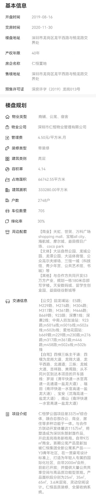【交通】四橫三縱主干道直達福田南山各大區,地鐵16號線回龍埔站(建設中)【教育】依山郡小學、龍城高級中學、香港中文大學(深圳)等教育