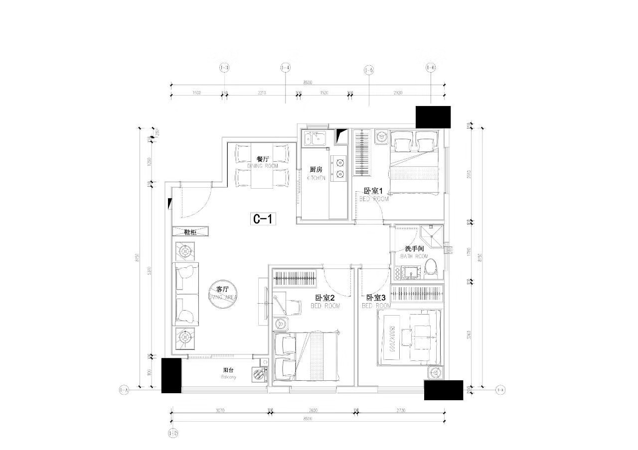 房屋戶型:1室 、2室 、3室 、
