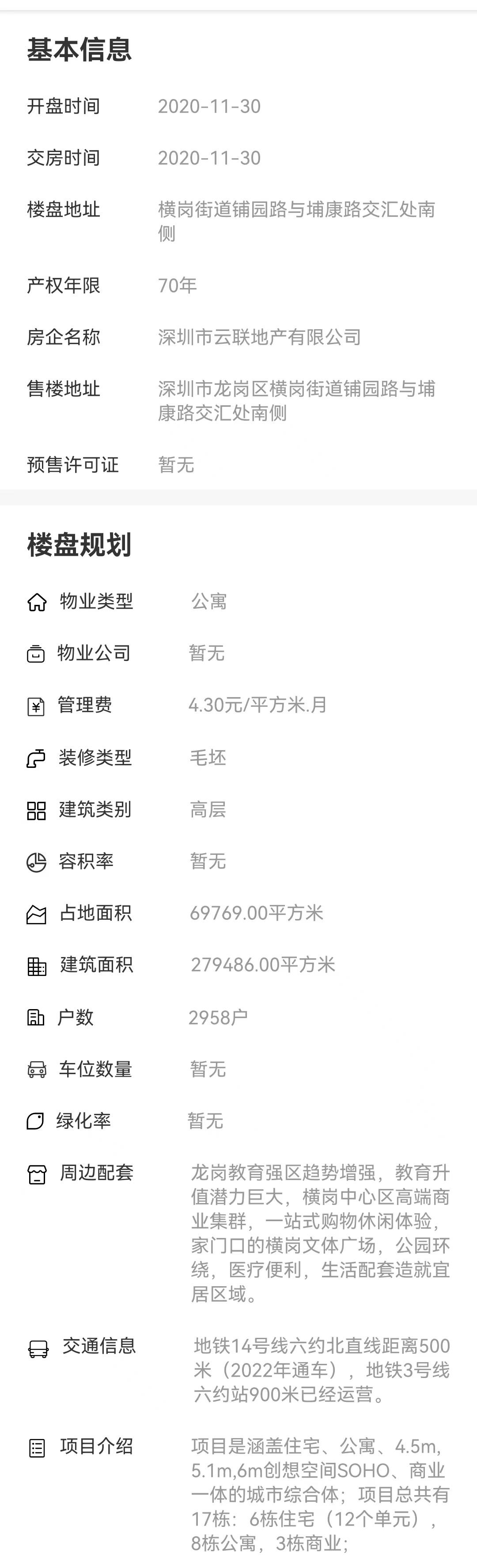 區域:深圳市龍崗區橫崗街道鋪園路與埔康路交匯處南側 最新開盤:-