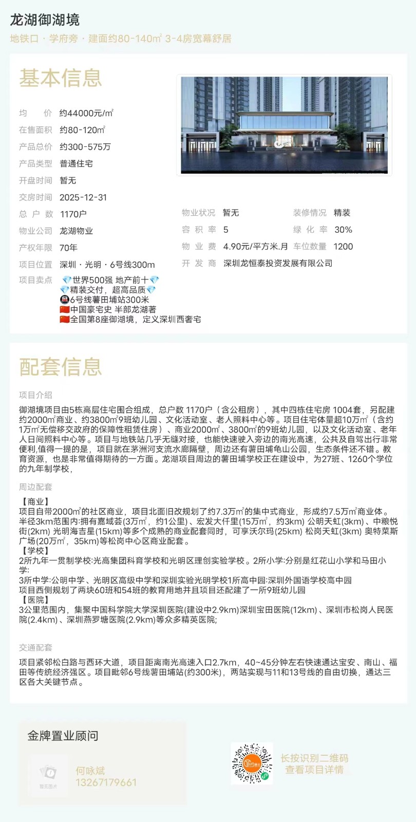 樓盤:龍湖御湖境物業類型:普通住宅戶型:3室、4室面積:約80-120平米總價:約300-575萬聯系人:何詠斌聯系電話:13267179661
